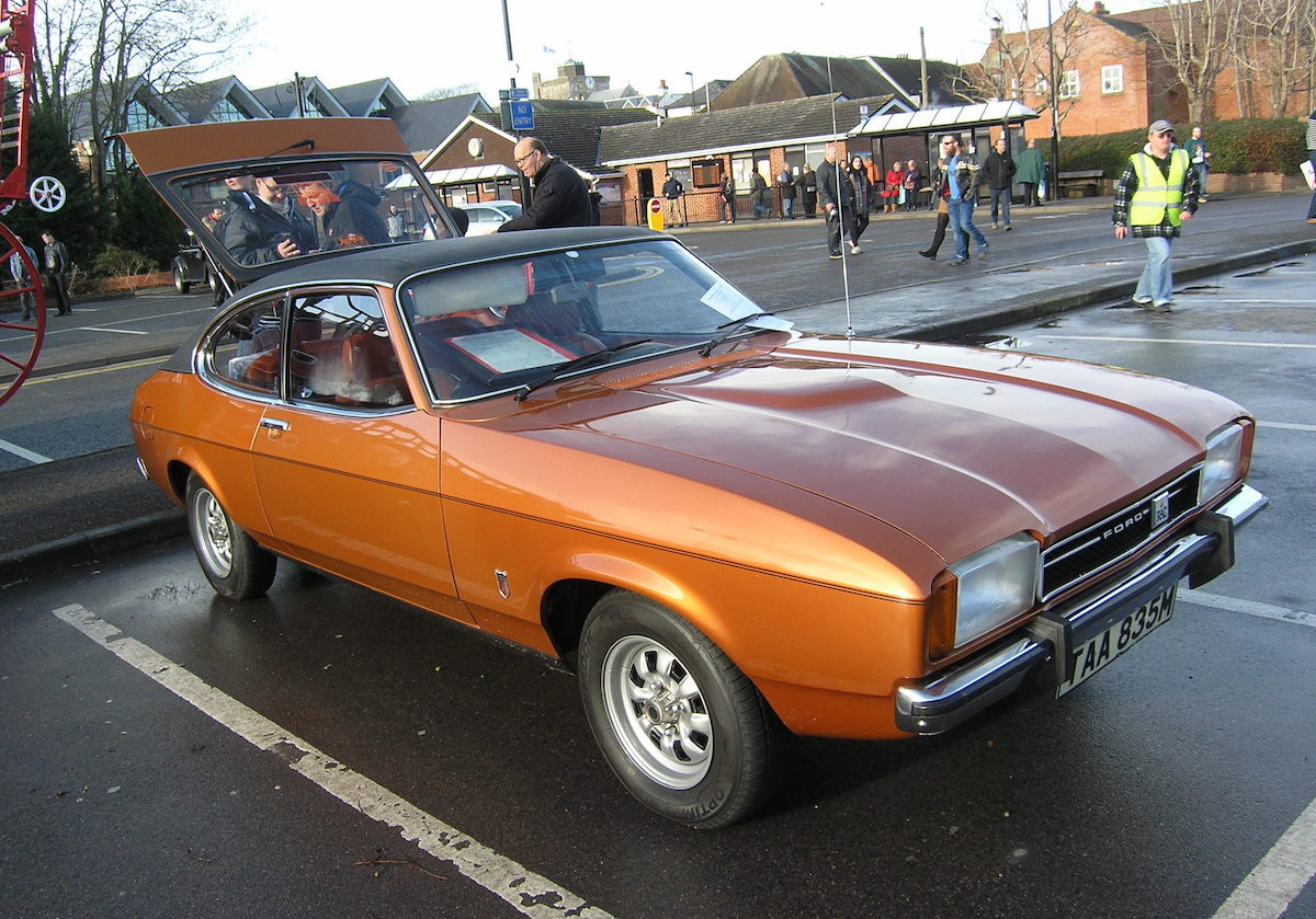 Nearby was another low-mileage unrestored Ford built the same year, this gleaming Sebring Red Mk1 Escort Mexico. It was bought new three months after the Capri, from Adlards Rallye Sport Centre, in Clapham Common, London, which had just been set up as an RS dealership.
