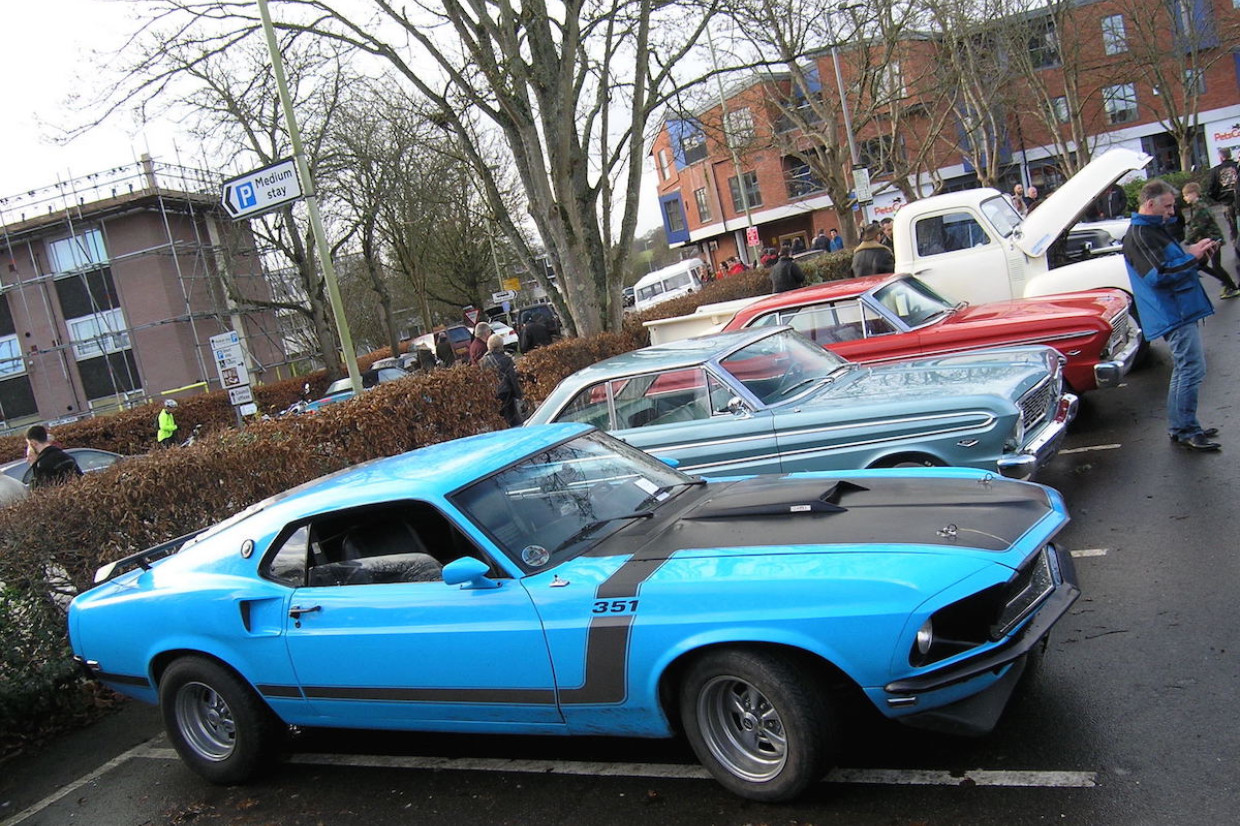 About a thousand vehicles converged on Romsey for its now-traditional Boxing Day Pre 1976 Meet. The busy gathering, set up by Steve Biddlecombe in 2002, drew about 50 mainly American motors to that first event, but now fills three car parks plus loads of other spaces all around the town centre. Transatlantic machinery (pre 1986) still features strongly, including Richard Biggs’ 1964 Ford Falcon Futura 289 (in centre), which he imported in 2009, alongside Dave Hillary’s stunning bright blue ’69 Mustang 351.