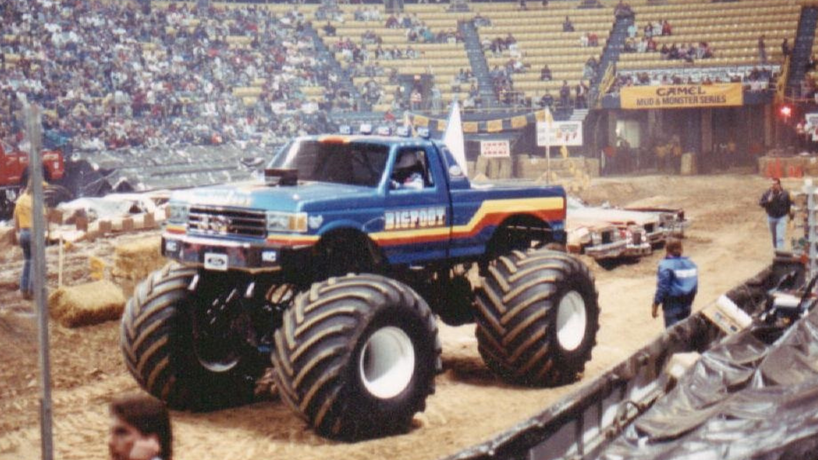 Bigfoot’s heyday was the ’80s, as Chandler began crushing cars in packed stadia, soon fitting 66in tyres to cause increasing amounts of mayhem, as numerous imitators followed in its huge tracks (rivals eventually drag-raced each other, crushing lines of cars as they bounded towards the finish line).