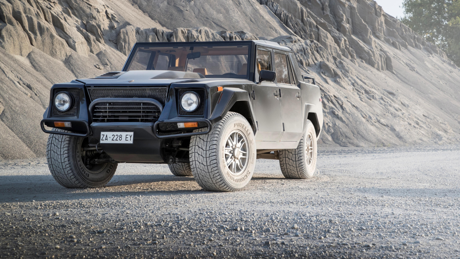 Dubbed ‘Rambo Lambo’, the LM002 started as a project to develop a high-performance off-roader for the military in the late 1970s, initially with a rear-mounted engine (the LM001), though the production LM002 put an engine in the nose.