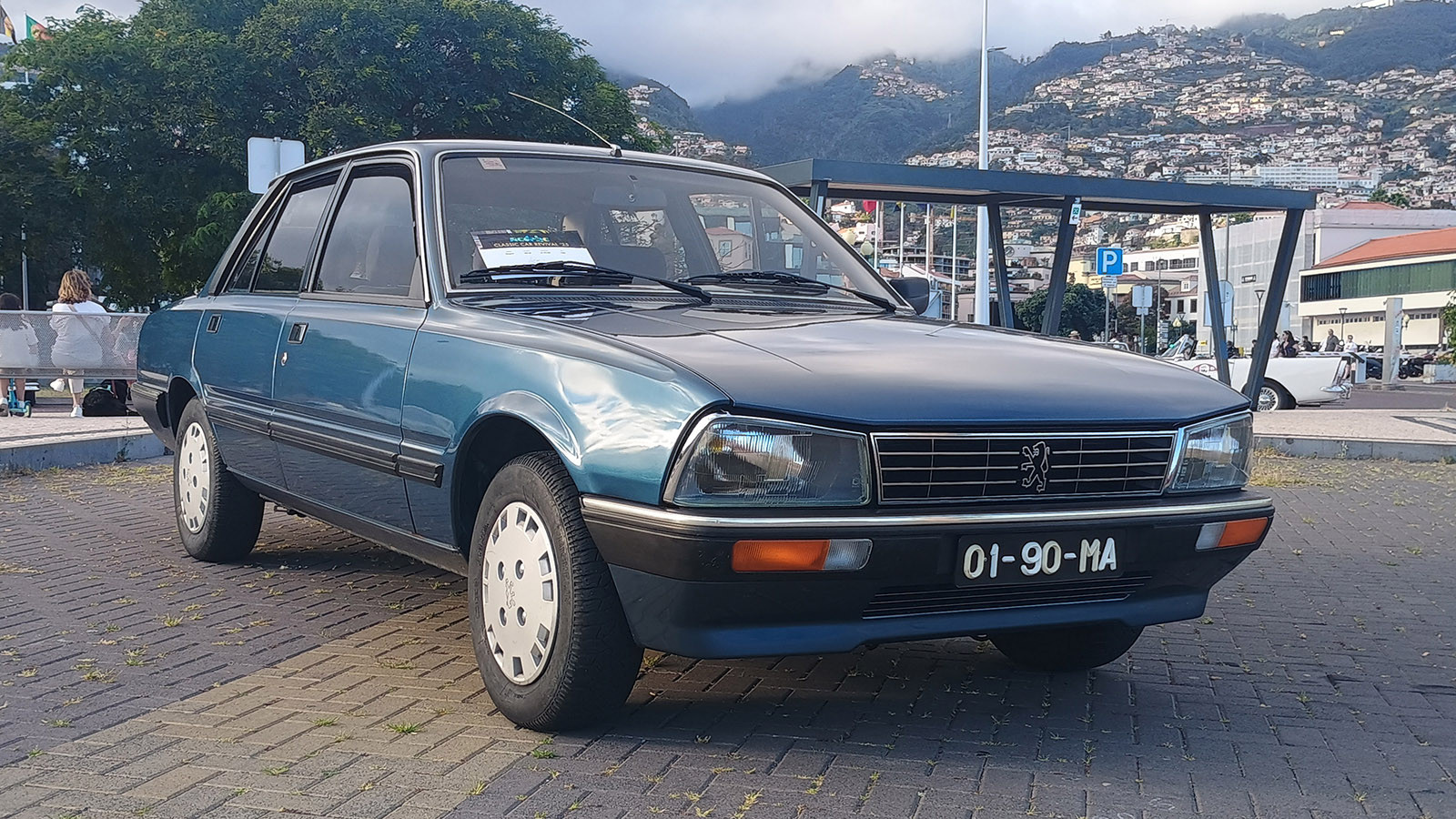 Parked near Peugeot’s first front-wheel-drive car, the 204, at the 2025 Madeira Classic Car Revival was its last rear-wheel-drive offering: the 505.