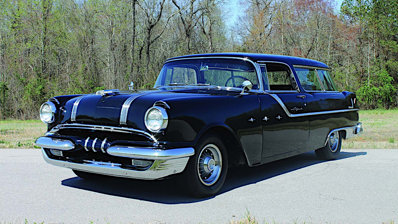 With three doors (including the tailgate) and a new V8 engine known as the Strato-Streak, the Safari was the top model in Pontiac’s 1955 station-wagon line-up.