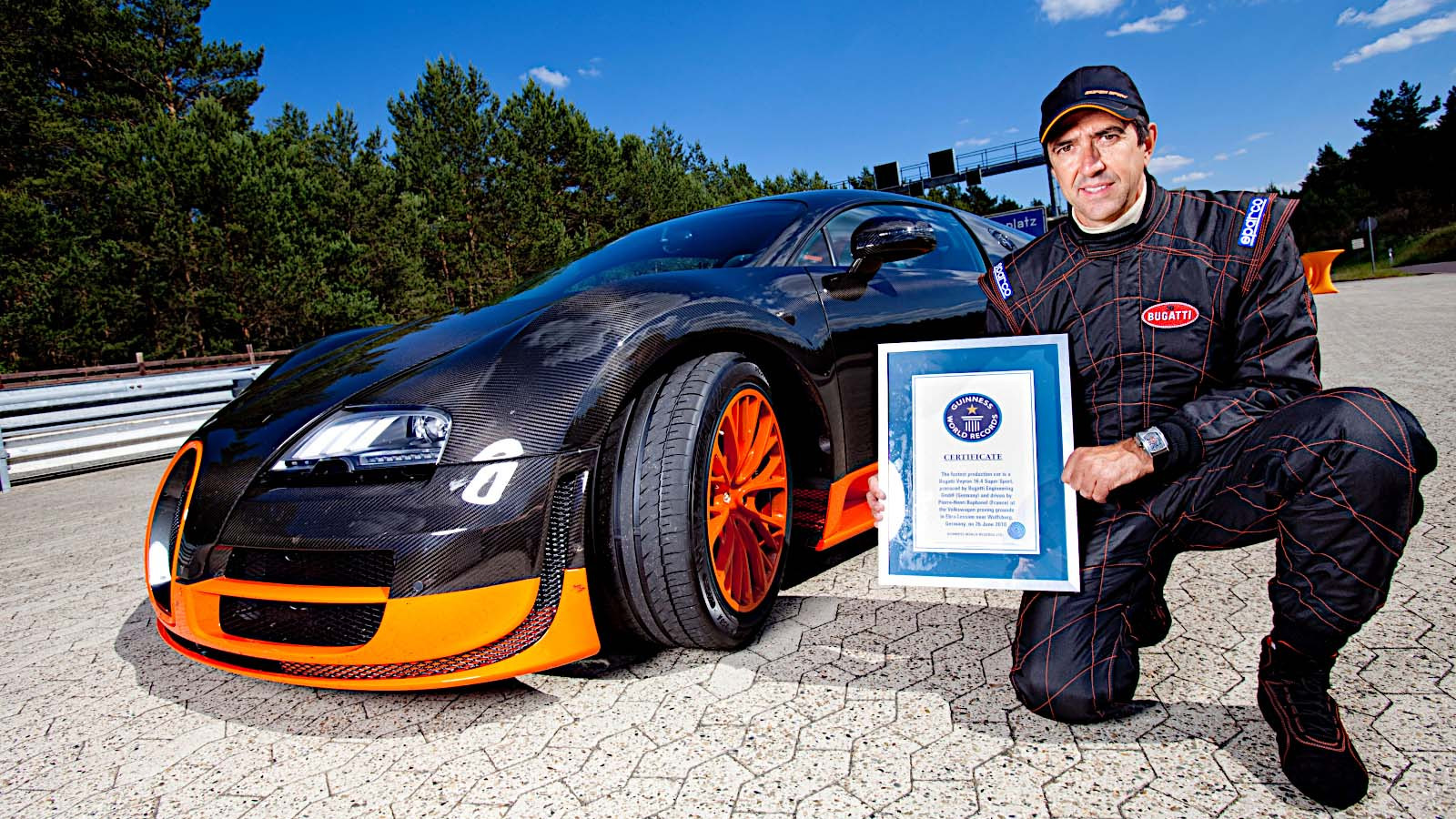 Several weeks before the Super Sport’s debut at Pebble Beach, Pierre-Henri Raphanel (pictured) drove an example at an average of 431kph (268mph) over two runs at the Volkswagen Group’s Ehra-Lessien test track in Germany, setting – it was initially believed – a new Guinness world speed record for production cars.