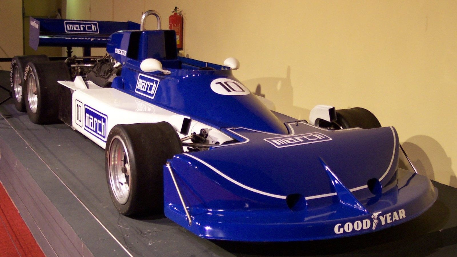 Like the Williams FW07D, the March 2-4-0 was another six-wheeled F1 racer.