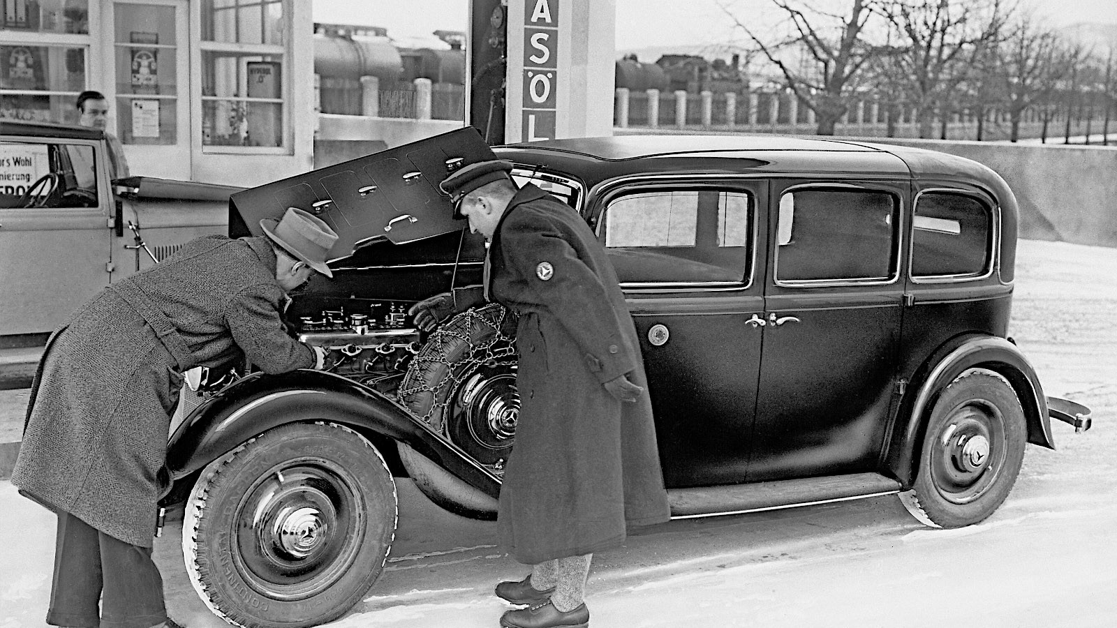 Mercedes used it for the first time for a series of cars with four-cylinder petrol or diesel engines beginning in August 1953, and then for larger but otherwise very similar-looking six-cylinder models from March 1954.