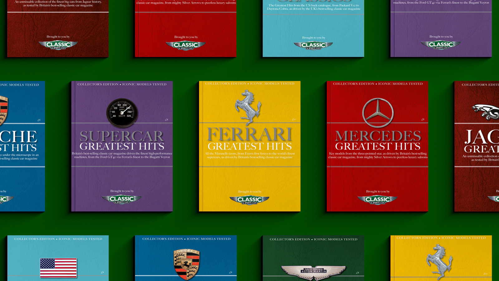 And there’s something for everyone, with one dedicated to American Classics, another to Jaguars, Porsches having their chance in the limelight, our Aston Martin special, one on the three-pointed stars of Mercedes-Benz and another on the prancing horses of Ferrari, and finally our Greatest Hits celebration of supercars.