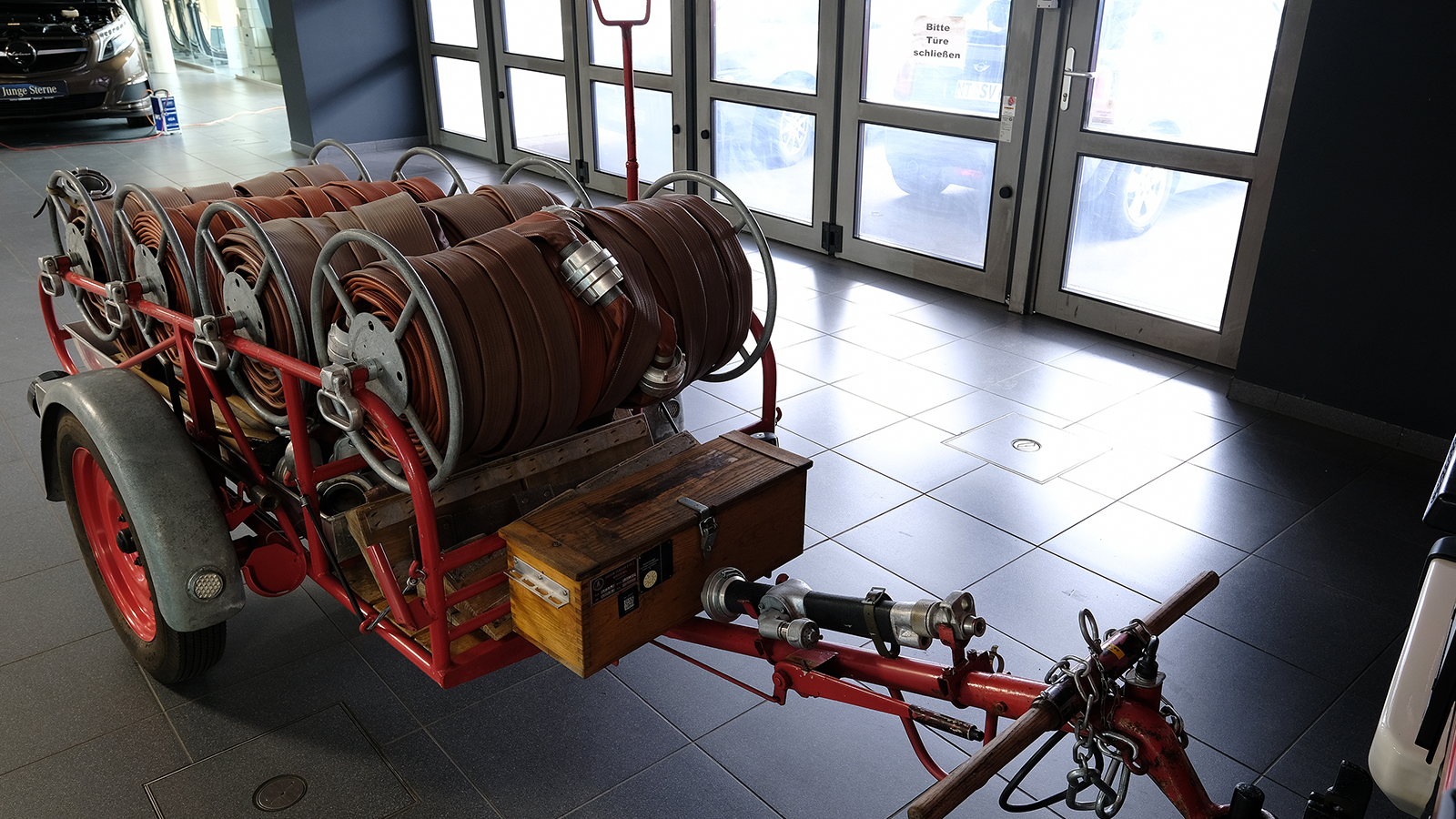 Here is that classic hose-hauling trailer once again, hitched to the fixed towbar.