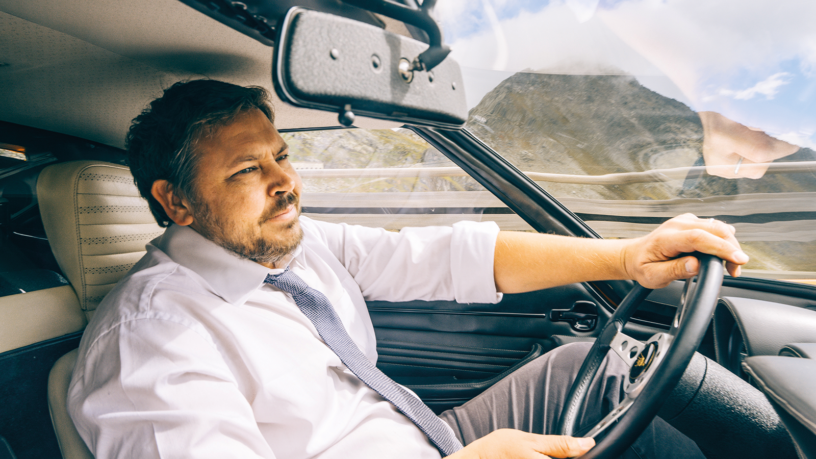 Ah yes, the hands. The way they manipulate the wheel is uncannily familiar: deliberate, respectful, caressing the leather rim and never crossing despite the acute corners we’re tackling.