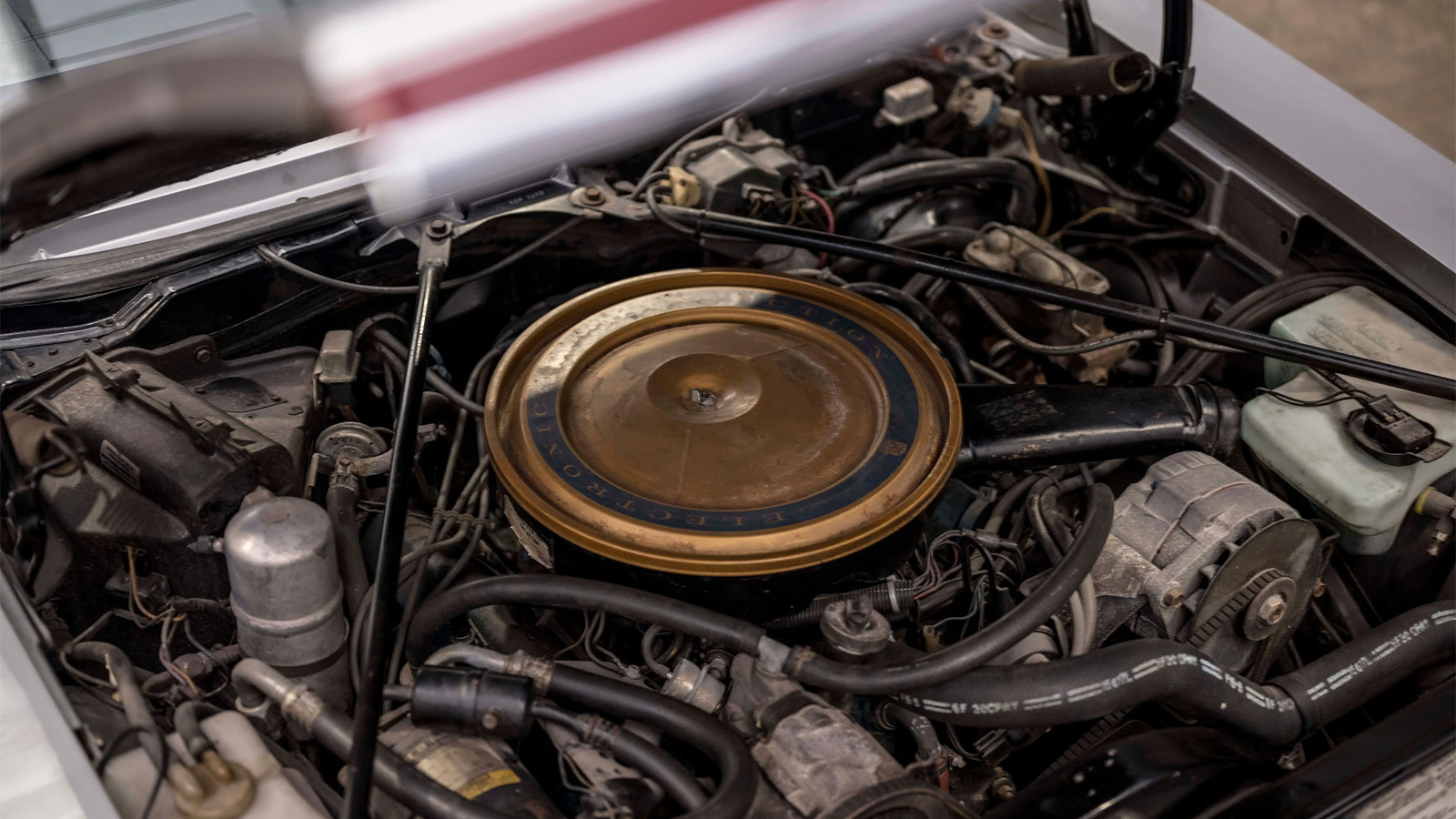 The auction house’s listing puts it neatly when it says this Cadillac’s grey-leather interior is: ‘rather tired-looking but by no means beyond redemption’.