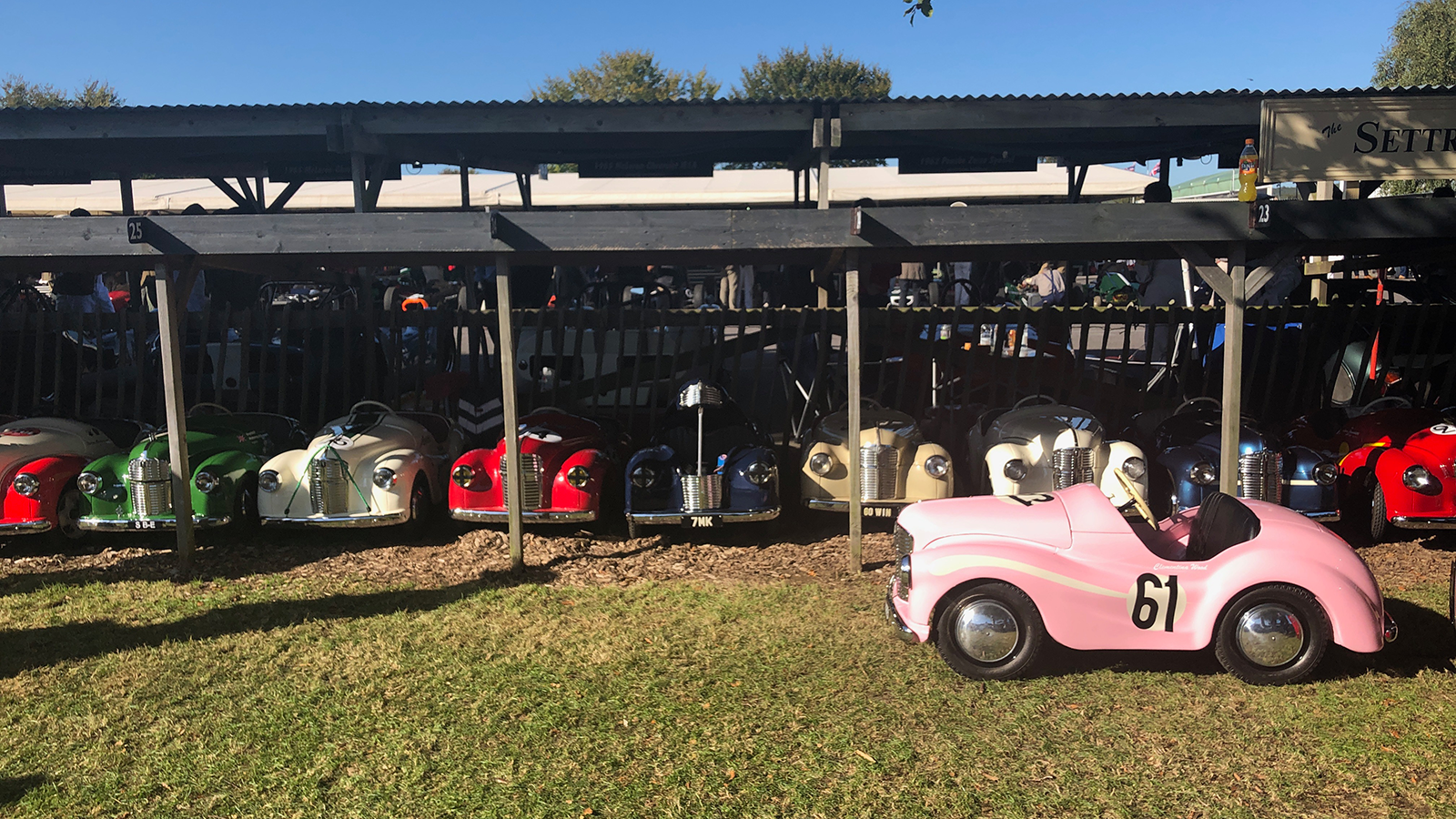 The may look cute and colourful, but competition between these Austin J40 pedal cars is fierce.