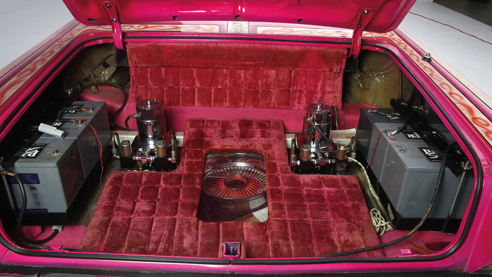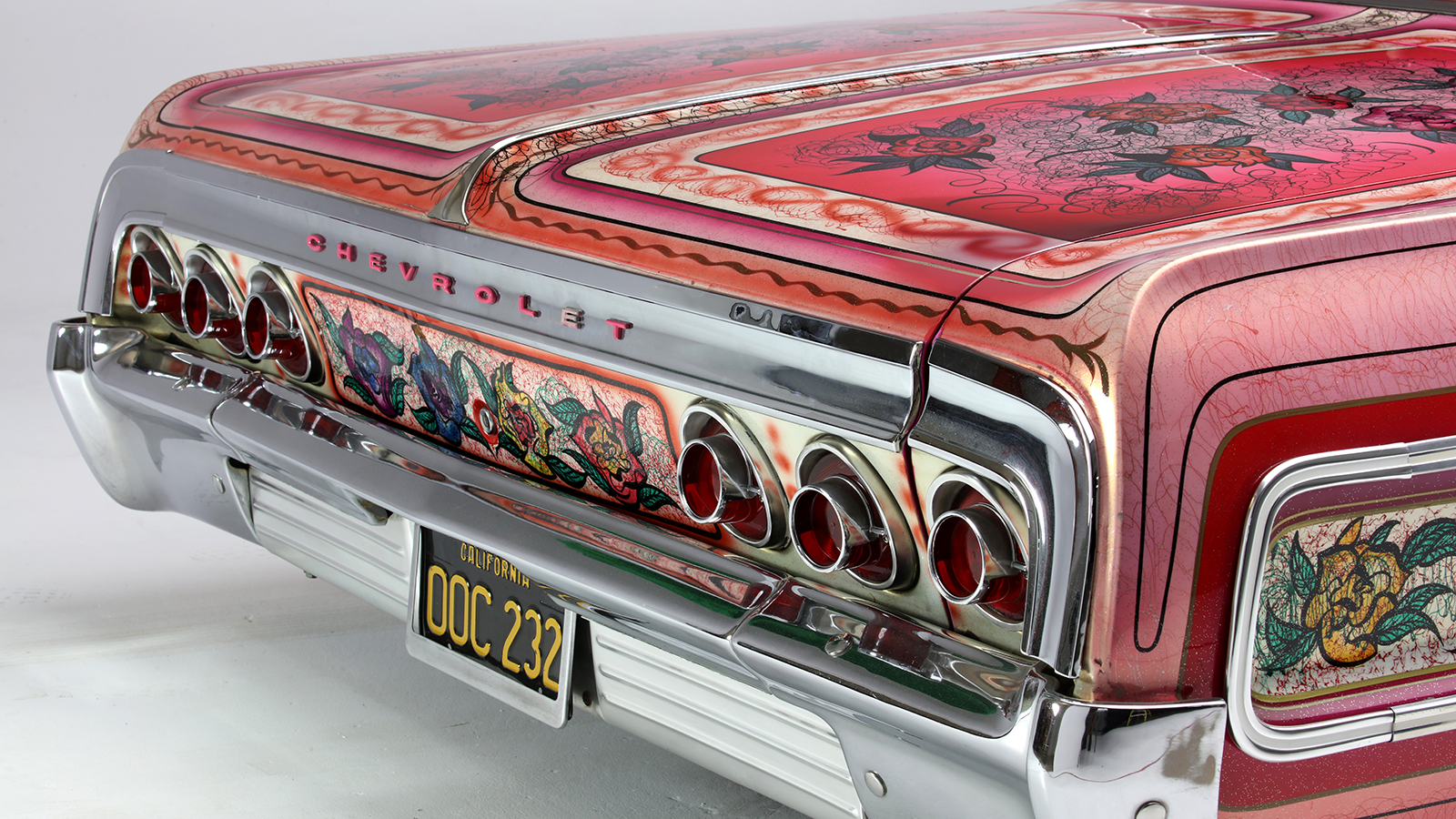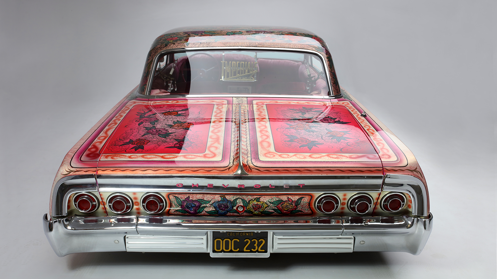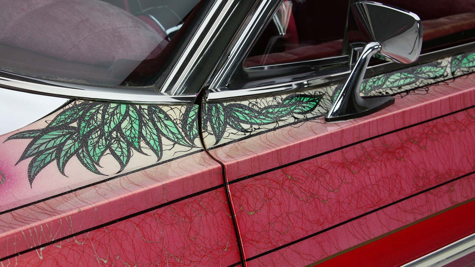 Most striking of all was the roof: dozens of immaculate roses against a pink metalflake background. The entire car was drowned in clearcoat – as much as 20 gallons, according to legend.