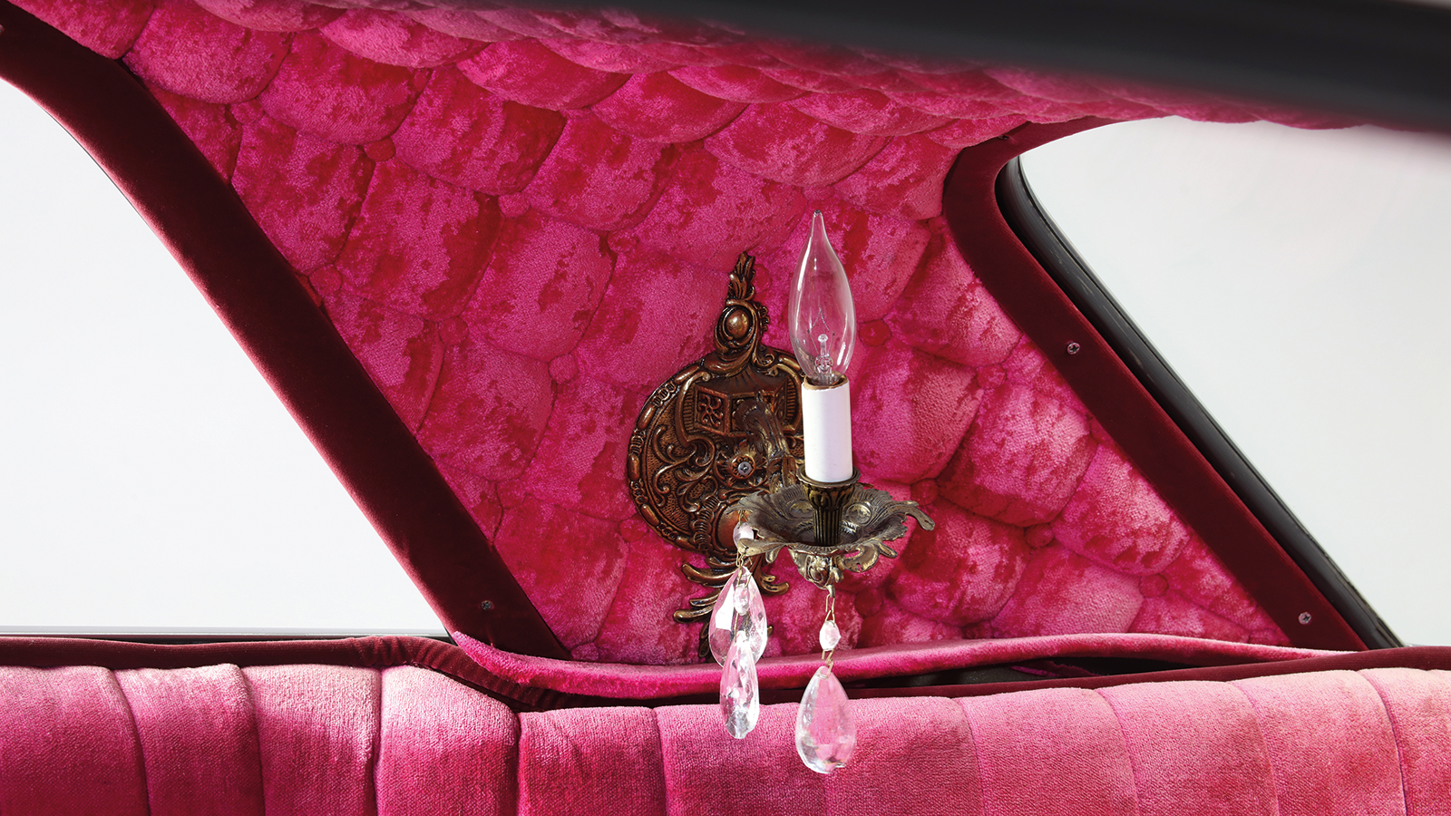 A fully customised cabin complemented the paintwork, with just about every surface clad with pink crushed velvet.