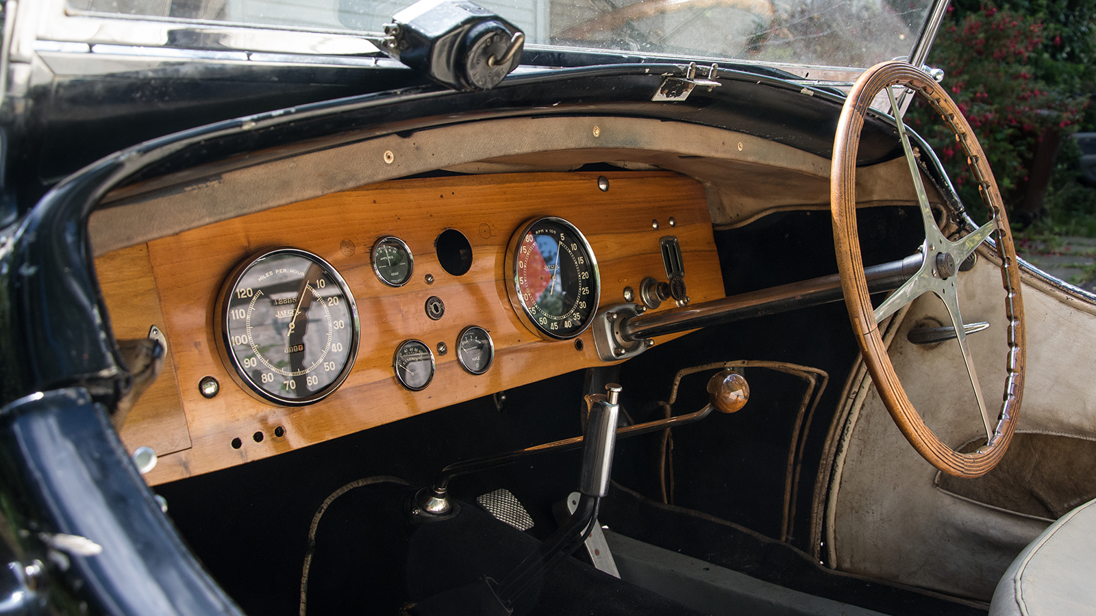 The open cockpit with original ivory leather trim, large Jaeger dials and a handsome four-spoke steering wheel would be instantly recognisable to Robert Ropner, who ordered the car new aged just 29.