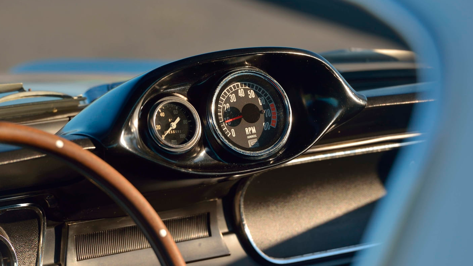 Of course, what’s under the bonnet is one of the things that makes this car so special, and that is a 289cu in, 306hp V8, with a Holley 715 CFM four-barrel carburettor, a Cobra aluminium high-rise intake and Cobra ‘Powered by Ford’ aluminium valve covers.