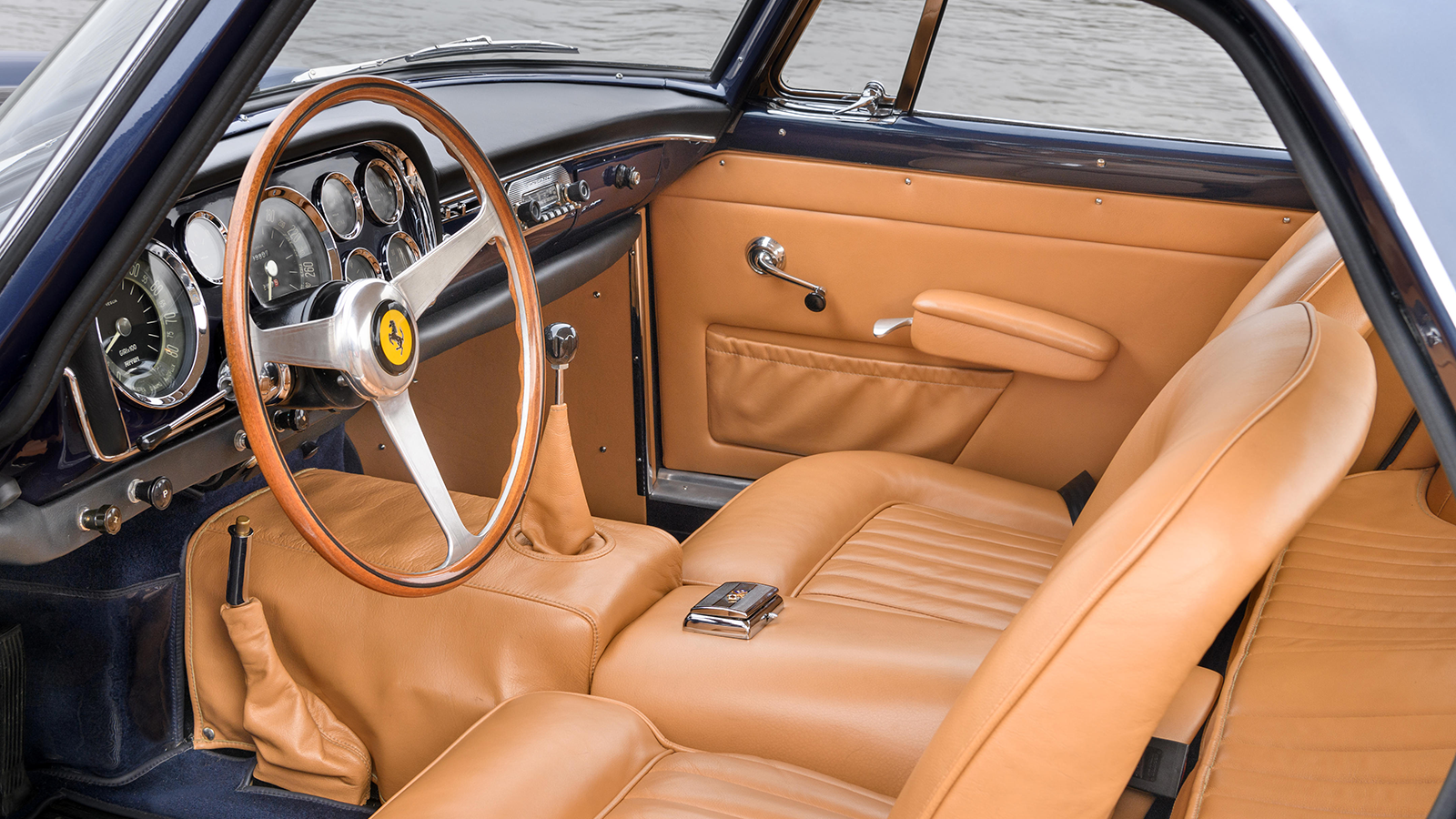 The tan-leather-trimmed interior not only sits very well with the exterior hue of its Pininfarina-penned body, it appears to be in excellent condition, too.