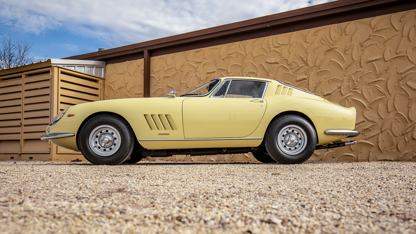 Pray bought it in 1973 and at some point had the car repainted Rosso Corsa, then when it was restored by a marque specialist in Texas in 1996 it received this pale-yellow hue, called Giallo Solare.