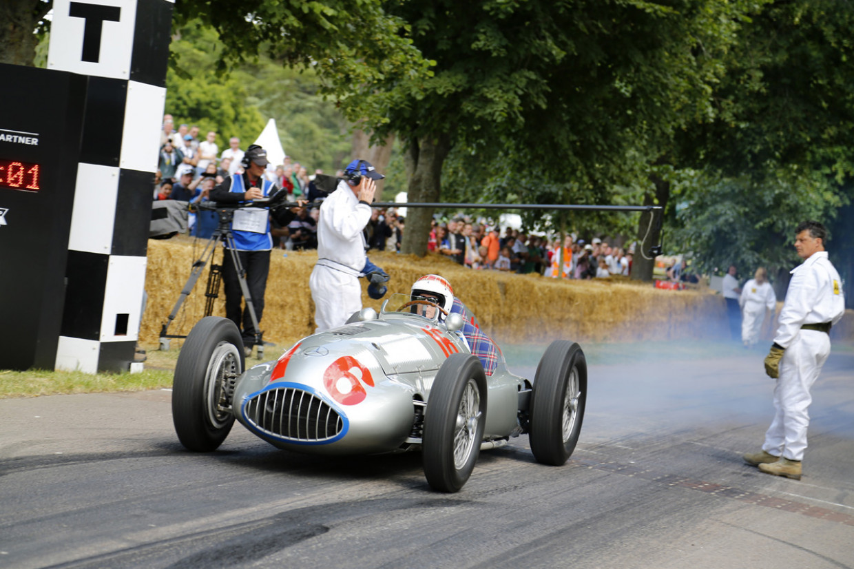 As well as the bark of highly tuned engines, visitors were welcomed to Lord March's estate by the arching sculpture of Gerry Judah, which featured two Mercedes Formula 1 cars, one modern and one historic replica, crossing paths to represent 120 years of the firm's motor sport history. It stands at 26-metres tall and is reported to weigh in excess of 150 tonnes.