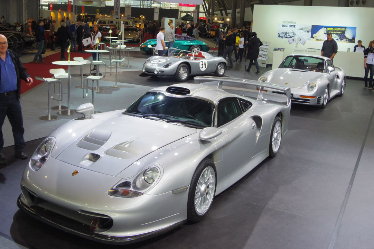 Supporting the Porsche Museum's relics was the altogether more polished presentation from the factory which, as in previous years, was brilliantly illuminated by dazzling bright lights. Echoing the main exhibition, a 1988 959 proved a draw for those keen to compare with its earliest incarnation.