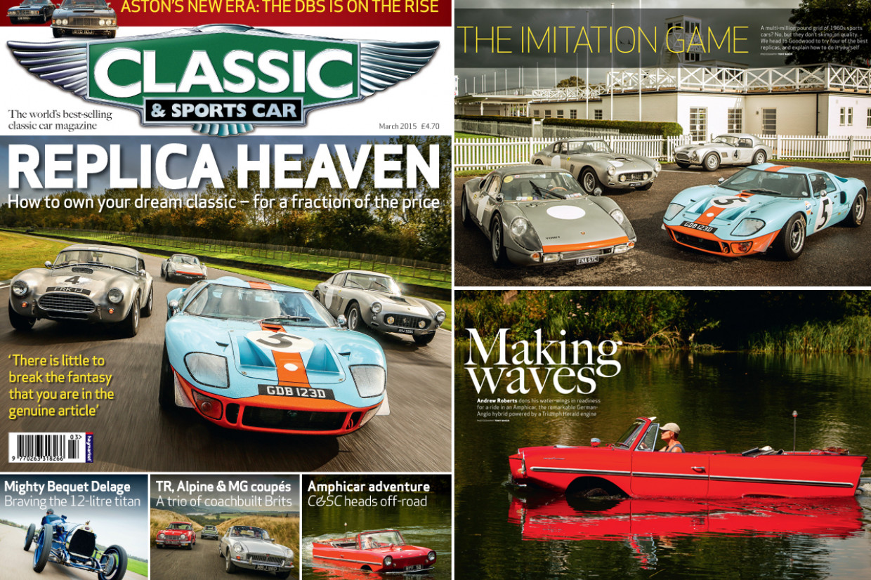 An incredible array of replica sports cars steal the limelight in the comprehensive March issue, which is on sale now (5 February). The great pretenders are joined by a dazzling selection of coachbuilt British coupés, an Amphicar 770 and a tyre-smoking pre-war Delage, while Aston Martin's DBS and DBSV8 do battle and the best 1980s barges money can buy are put to the test.