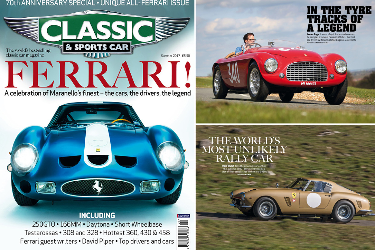 A special collector’s edition of Classic & Sports Car dedicated exclusively to Ferrari’s finest road and race cars hits the shelves in the UK next week (22 June). The special summer issue will celebrate the 70th anniversary of the Maranello firm through a collection of jaw dropping features and exclusive drives, ranging from the one time fastest car in the world through to a trio of the most ferocious, track-focused supercars.